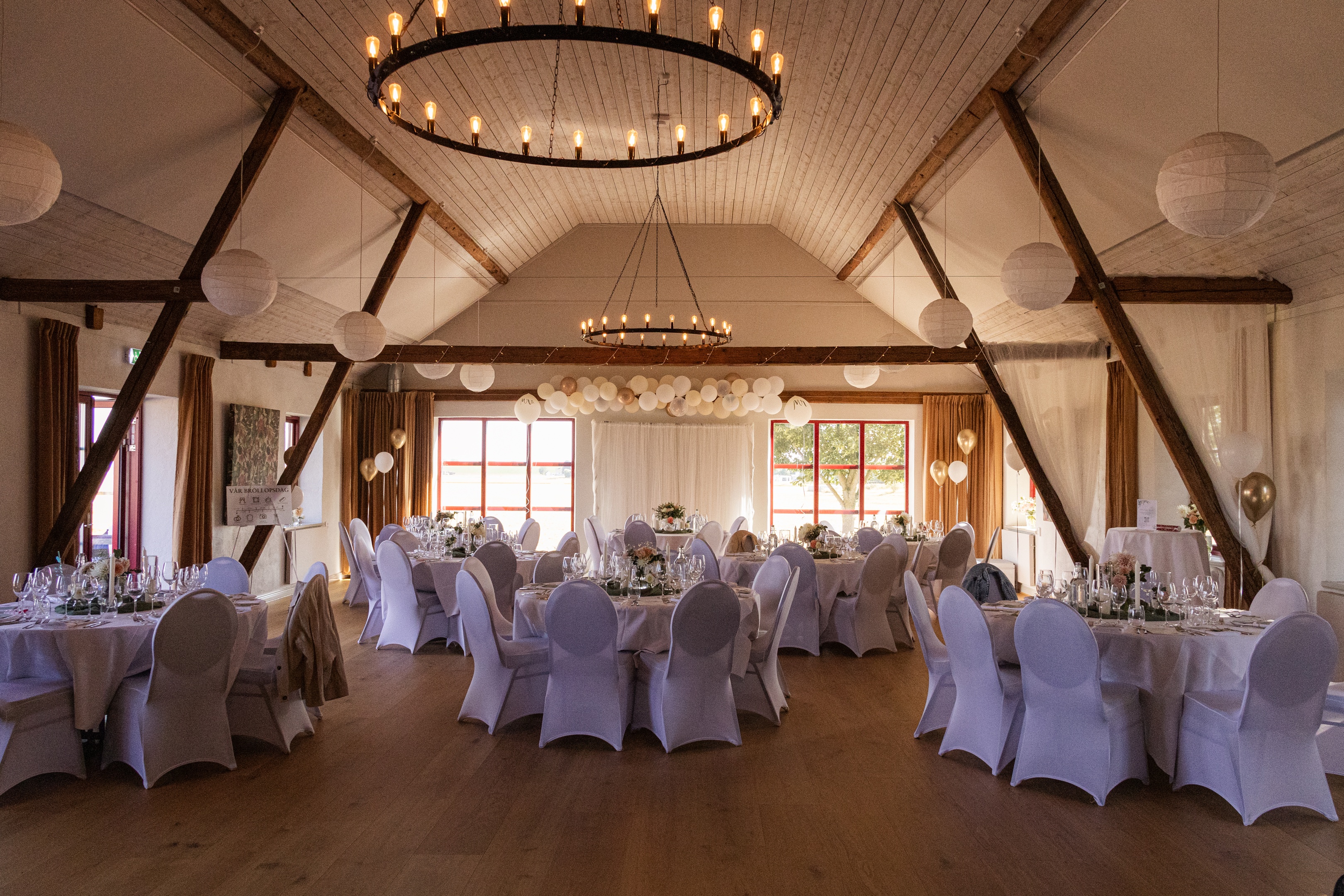Välkommen till vår charmiga bröllopslokal, som står redo att hyras för er speciella dag. Belägen som en del av en avstyckad 1900-tals gård och ombyggd från en gammal stallänga, erbjuder vår lokal en unik och oförglömlig atmosfär. Med plats för cirka 100 personer vid middagsdukning, omfamnar den en förtrollande utsikt över gula rapsfält och gröna kullar, vilket skapar en magisk atmosfär för ert bröllop.