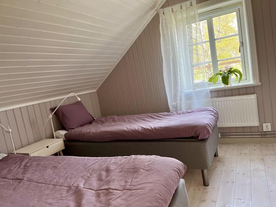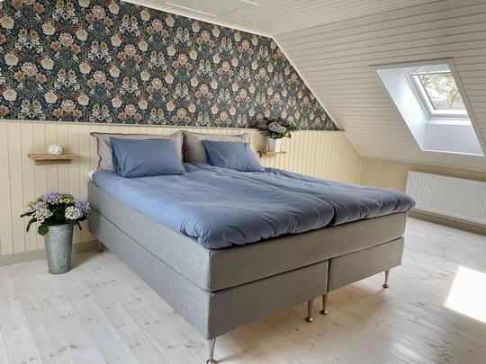 På den övre våningen hittar ni det stora huvudsovrummet med plats för två personer och rymliga garderober för förvaring av era tillhörigheter. Utöver detta finns två mindre sovrum, vardera med plats för två personer, samt ett badrum med dusch vilket gör det till en perfekt plats för familjer eller grupper av vänner att bo bekvämt. Dessutom erbjuds ett bekvämt allrum där ni kan koppla av och umgås efter en dag med äventyr.