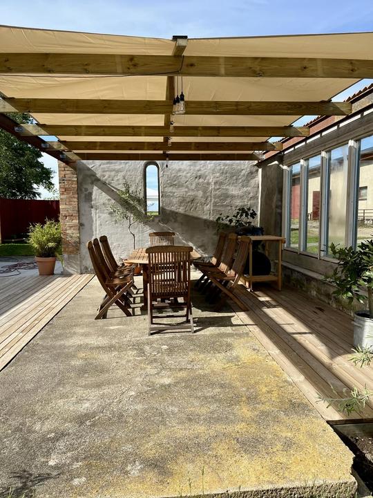 Stig ut på vår underbara uteplats och upplev en oas av lugn med enastående utsikt över den böljande landsbygden på Österlen. Här kan ni njuta av måltider utomhus vid det generösa matbordet medan ni andas in den friska luften och lyssnar till ljudet av naturen omkring er. För de som älskar att grilla finns en bekväm grillplats där ni kan tillaga läckra måltider medan ni njuter av den vackra omgivningen. Oavsett om det är en romantisk middag eller en familjemiddag med nära och kära, är vår uteplats den perfekta platsen att skapa minnesvärda stunder och njuta av den genuina känslan av lantlivet på Österlen.